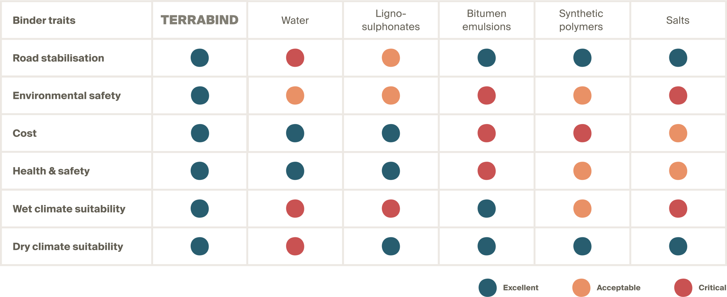 Terrabind creates a solid, smooth road surface layer for less dust and better road stability. It’s applied less frequently so you have less water trucks on the road, less maintenance and better cycle speeds.