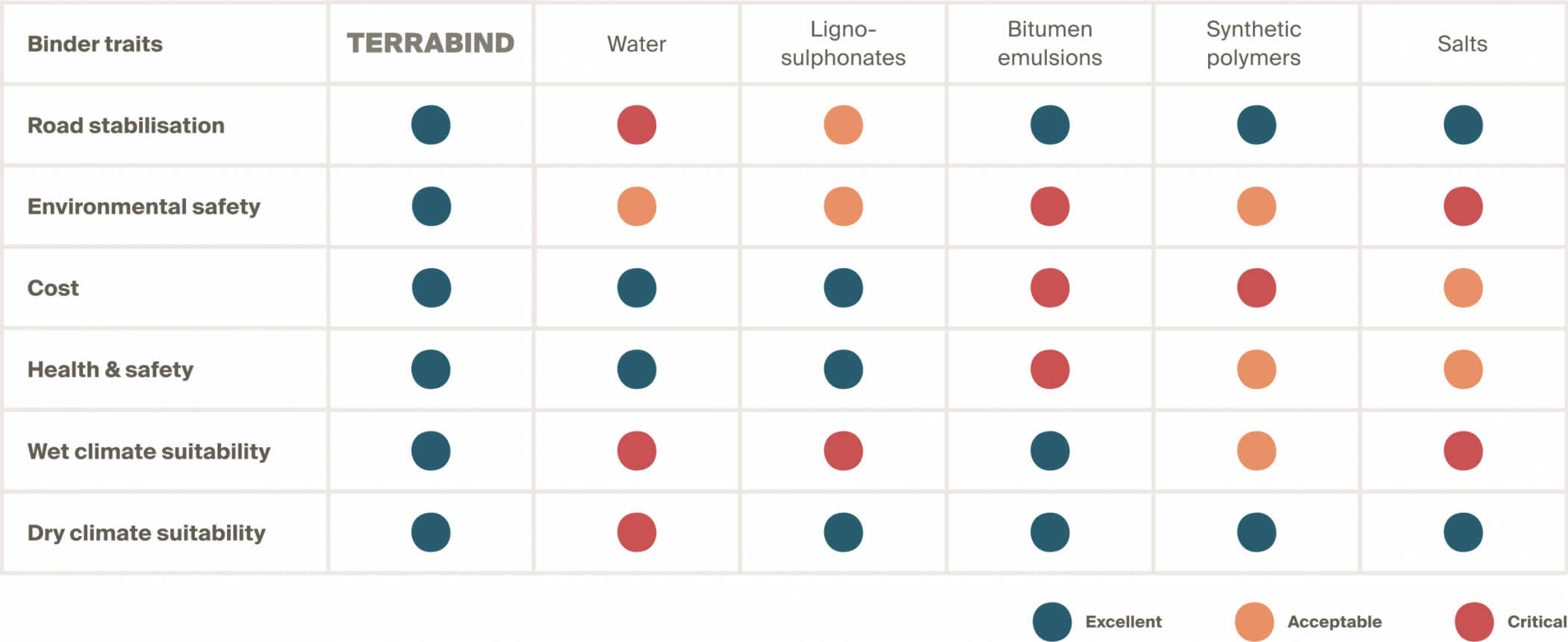 Terrabind creates a solid, smooth road surface layer for less dust and better road stability. It’s applied less frequently so you have less water trucks on the road, less maintenance and better cycle speeds.